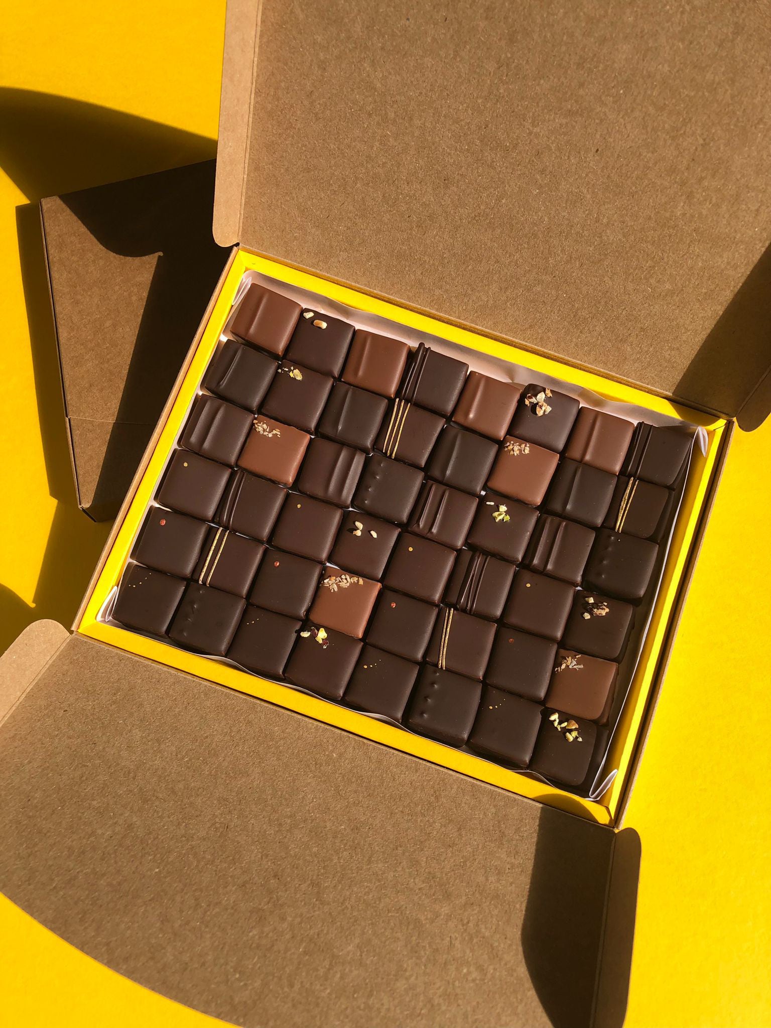 Il cofanetto 48 praline assortite offre una golosa esperienza che va dalla scioglievolezza della ganache al ruvido praliné, dodici gusti diversi tutti da assaporare: latte, fondente, extrafondente, caffè, cappuccino, caramello al burro salato, ciliegia, limone, arancia e miele di castagno, cocco, pistacchio e nocciola.